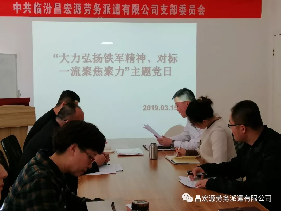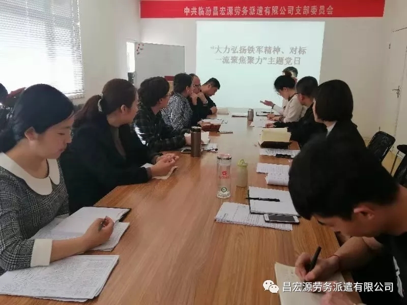 3月15日下午,臨汾昌宏源勞務(wù)派遣公司黨支部開展了“大力弘揚(yáng)鐵軍精神、對(duì)標(biāo)******聚焦聚力”為主題的黨日活動(dòng)。