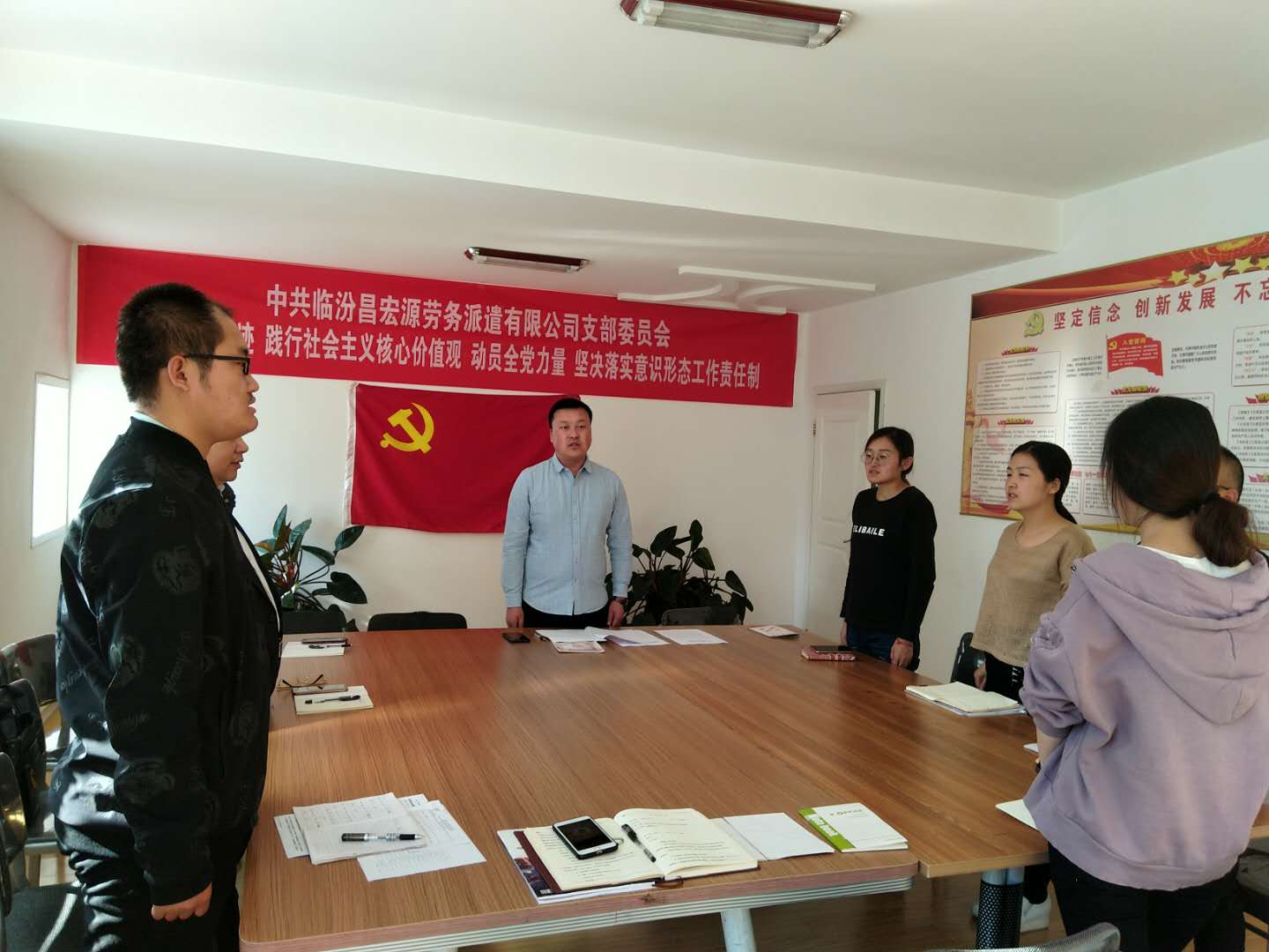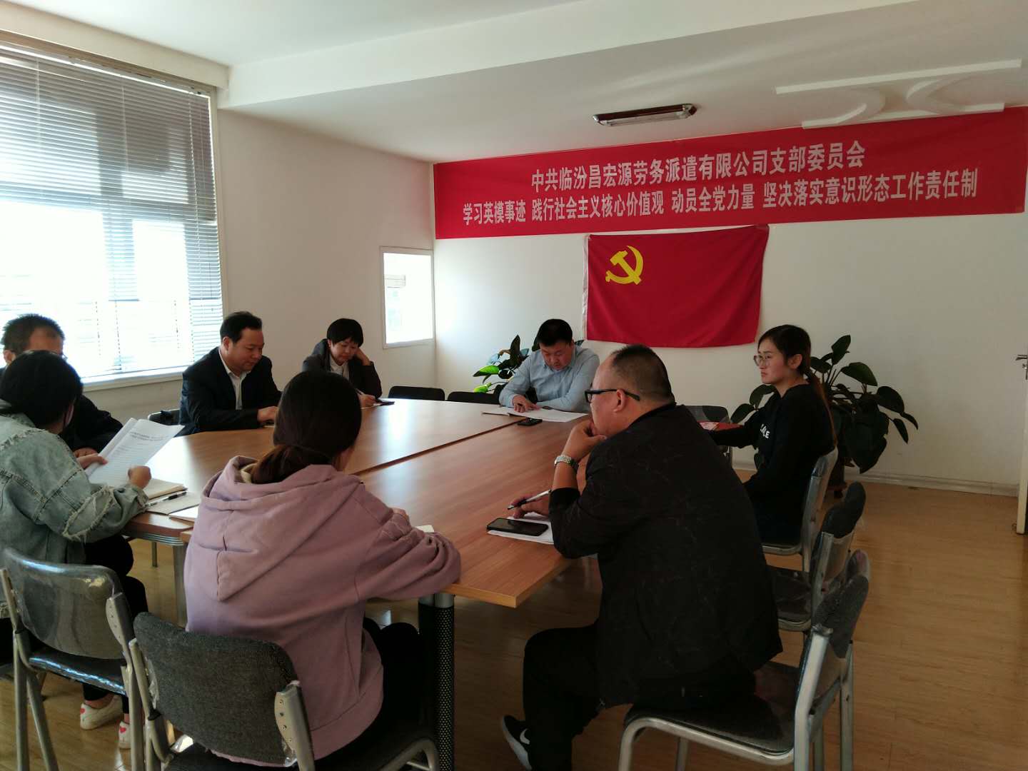 2018年10月10日在臨汾昌宏源勞務(wù)派遣有限公司黨支部三樓黨支部辦公室進行了中共臨汾市堯都區(qū)非公有制經(jīng)濟組織委員會文件關(guān)于組織開展10月份主題黨日活動的學(xué)習。