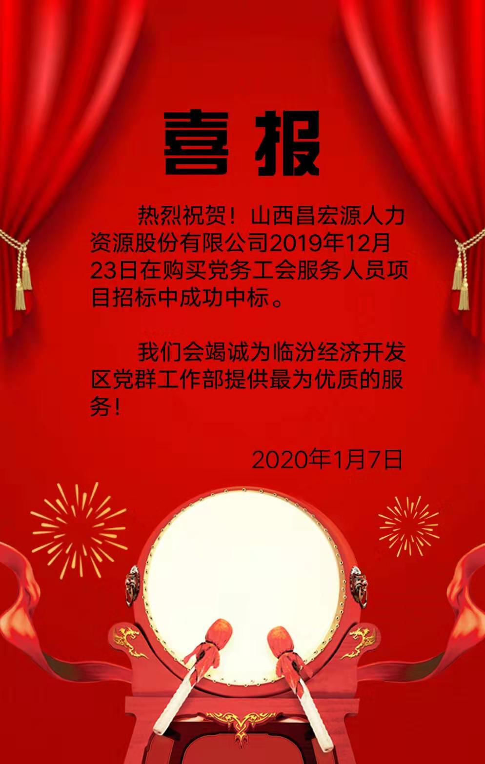 熱烈祝賀我公司在購(gòu)買(mǎi)黨務(wù)工會(huì)服務(wù)人員項(xiàng)目招標(biāo)中一舉中標(biāo)
