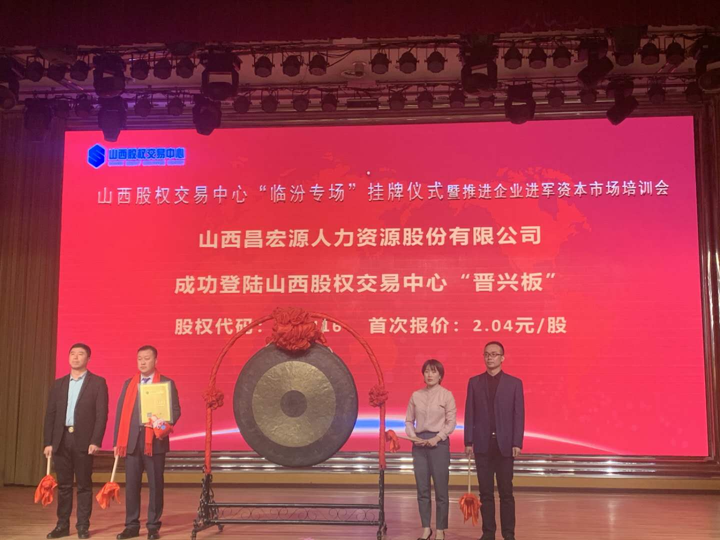 山西股權(quán)交易中心“臨汾專場(chǎng)”掛牌儀式暨推進(jìn)企業(yè)進(jìn)軍資本市場(chǎng)培訓(xùn)會(huì)在2020年10月23日上午順利召開。山西昌宏源人力資源股份有限公司成功登陸山西股權(quán)交易中心“晉興板”。