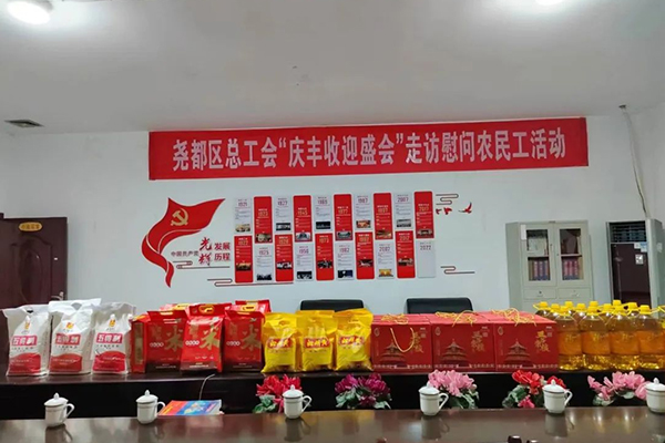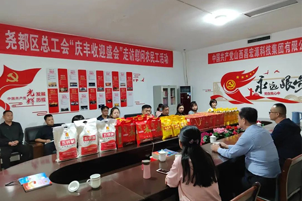 2022年是黨的二十大召開之年,是進(jìn)入全 面建設(shè)社會(huì)主義現(xiàn)代化國 家、向第二個(gè)百年奮斗目標(biāo)進(jìn)軍新征程的重要一年,也是鄉(xiāng)村振興全 面展開的關(guān)鍵之年。為慶祝第五個(gè)“中國農(nóng)民豐收節(jié)”,9月28日下午,臨汾市堯都區(qū)總工會(huì)開展以“慶豐收 迎盛會(huì)”為主題的慰問農(nóng)民工活動(dòng),區(qū)總工會(huì)主席秦奇杰等一行人來到我們山西昌宏源人力資源股份有限公司對(duì)13名農(nóng)民工進(jìn)行走訪慰問,為我們送來米、面、油、小米、五谷雜糧等慰問品。